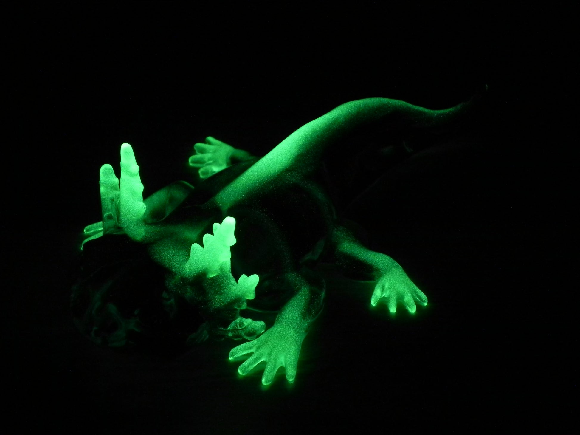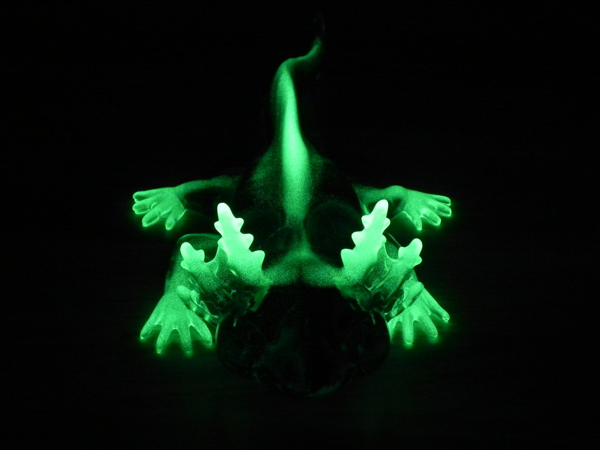 Resin cast with Black Resin Pigment and Lime Green Glow micapowders.