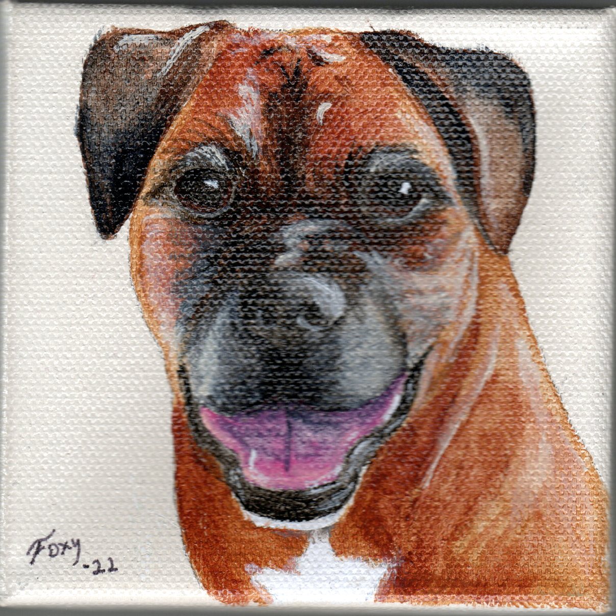 To complete your order you will need to Contact Foxy with photos of your pet, at least one with the pose you'd like, and more supporting photos if there are markings not as visible or to clarify colors. Remember, Foxy can only paint what you show her. In the rare circumstance, if photos are not clear enough to paint from, Foxy reserves the right to refuse the project and fully refund the fee. When in doubt, contact Foxy before ordering.
