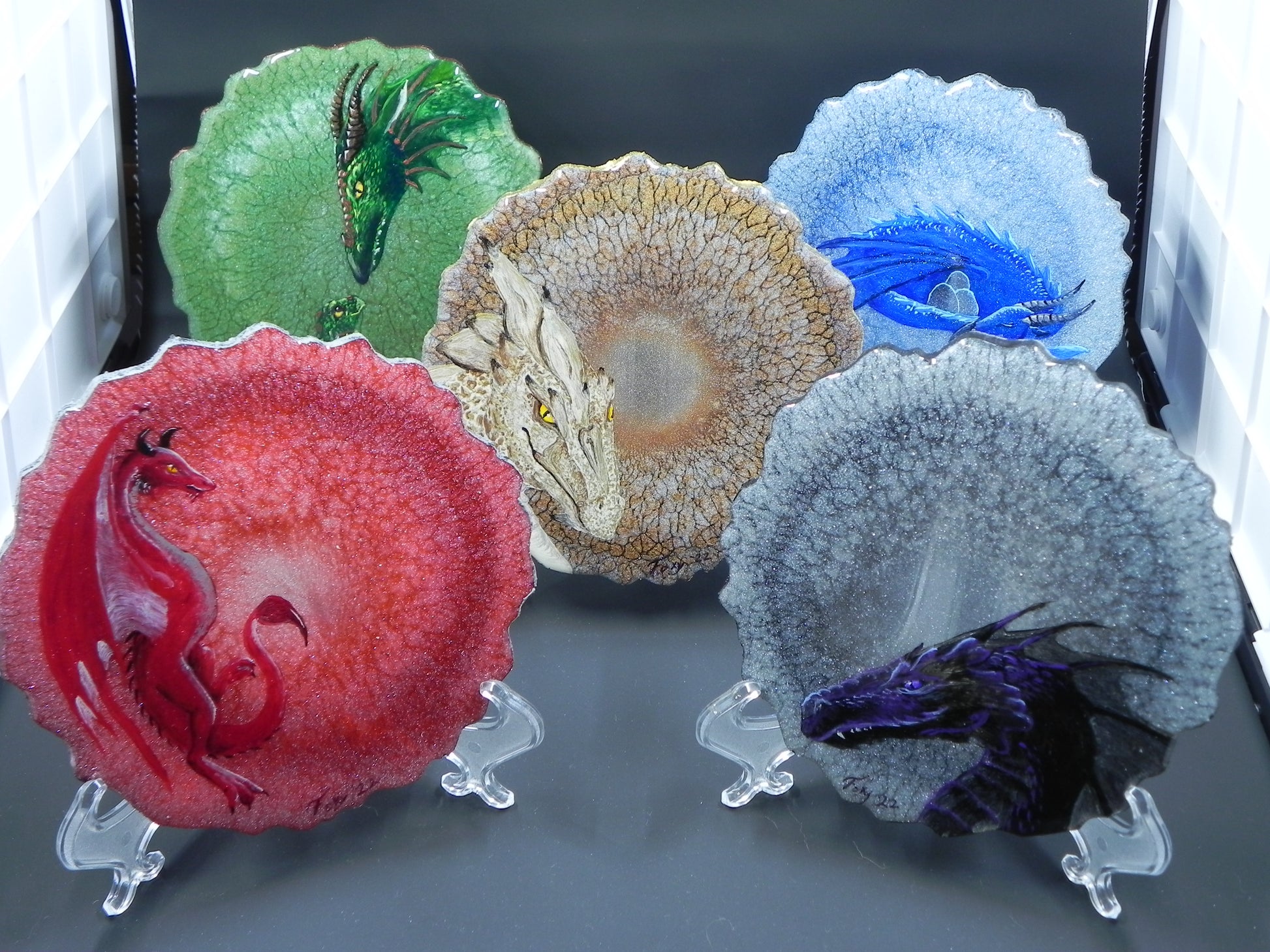 Price includes custom outlined artwork approved by you before transfer. Painting on geode approved by you prior to sealing coat (up to 2 adjustment phases if needed). Dragonscale geodes are hard to control, so precise effects cannot be guaranteed. You will see your geode before project commences. All custom work must be prepaid and is nonrefundable once project is accepted by Foxy. Unlikely it should happen, but Foxy reserves the right to refuse a project with a full refund. When in doubt--contact Foxy first to discuss.