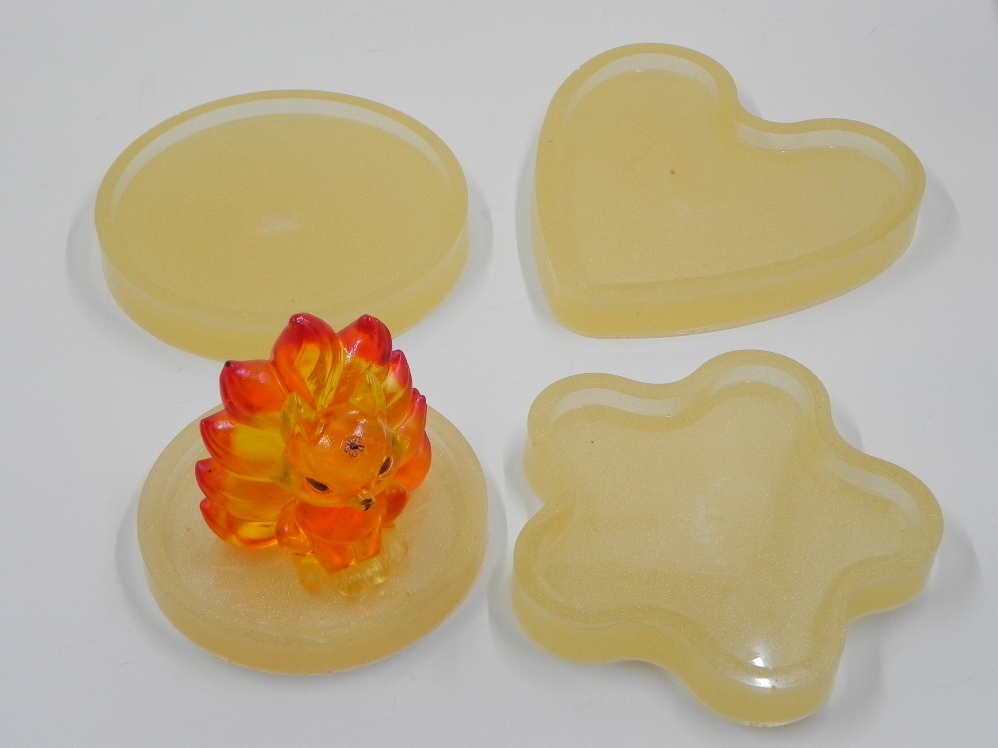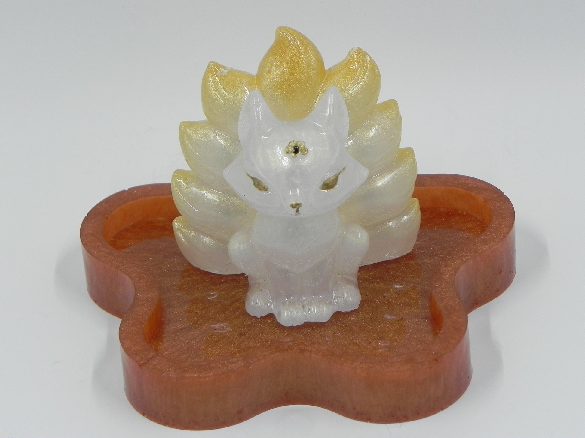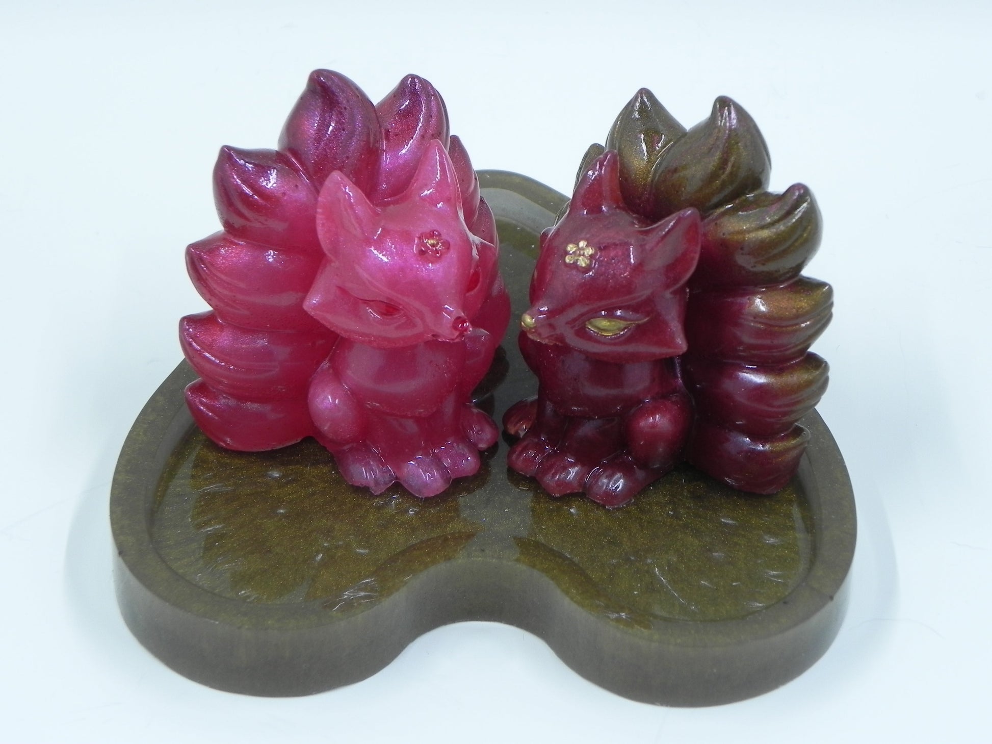 Resin dish perfect for displaying small figures, a couple koi fish, or even three kitsune figures. Free optional sand fill--email seller to request. Foxy has a wide and ever-changing list of colors to select from. Mica powders for a sparkle sheen or stone look to alcohol inks for the look of colored glass. Optional baggie of decorative sand available free of charge.